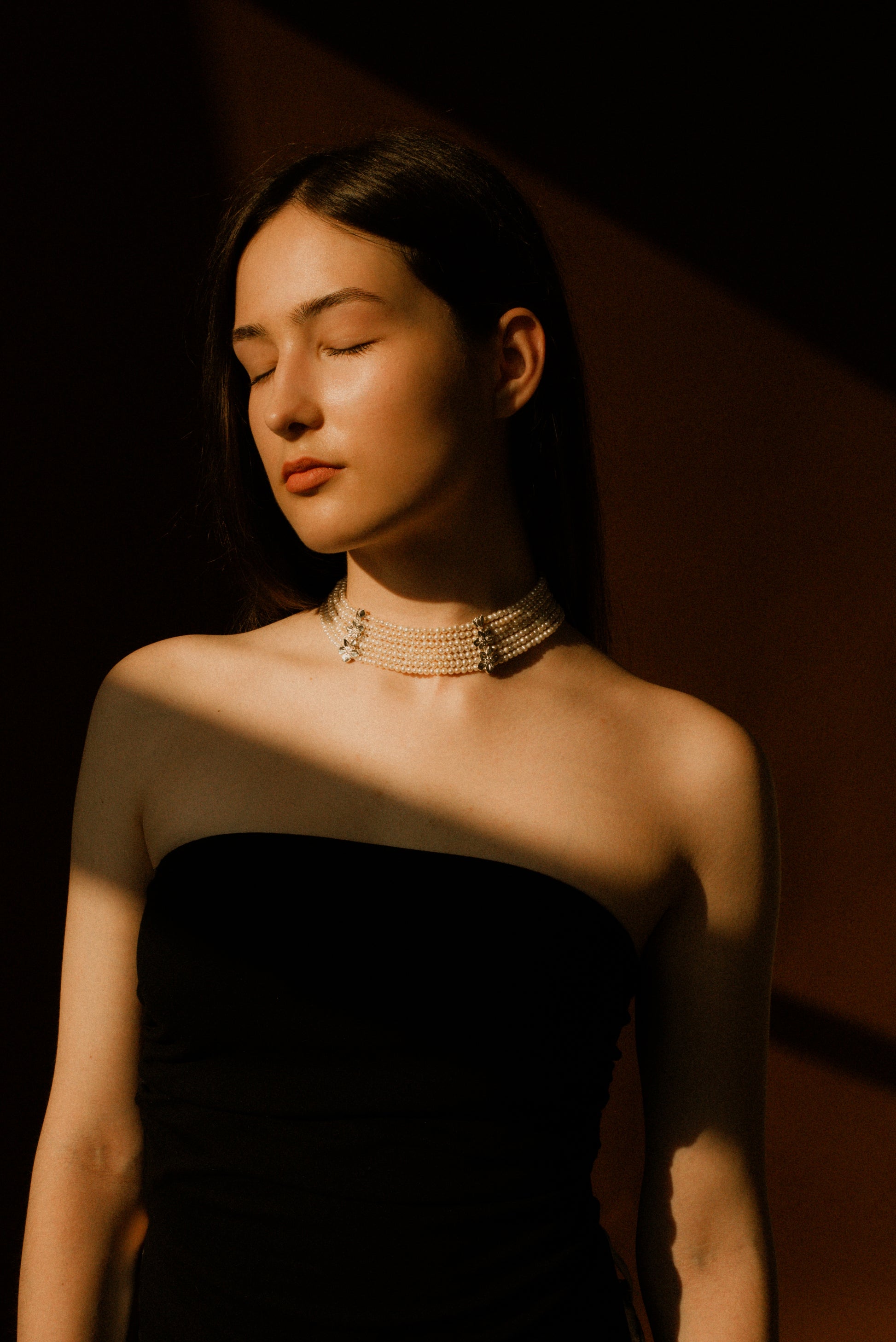 Чокер багатошаровий з натуральних перлів. Довжина чокера: 35 см + 7 см подовжувач. Матеріали: натуральні перли, срібна фурнітура з позолотою